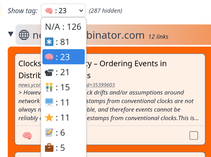 ReadStuffLater uses emojis to tag content β . It's simple, it's fun, and it affords basic content organization without encouraging users to spiral into reinvent-Dewey-Decimal territory.